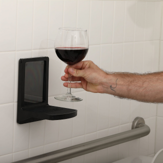 Antibacterial shelf with non-slip surface and built-in customizable messaging.